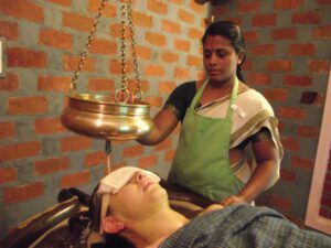 Im Ayurveda wird der Kopf als „Tor des Himmels“ bezeichnet. Der Shirodhara ist eine sehr intensive Anwendung, wobei zirka 3 Liter kostbares medizinisches Öl wird als Guss ununterbrochen über die Stirn gegossen wird .