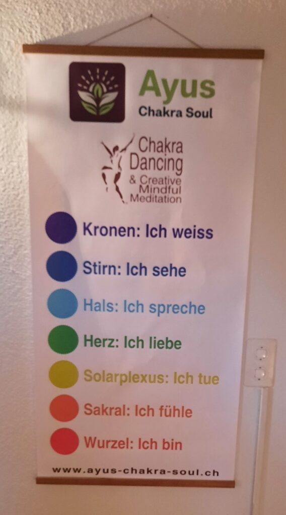 - Freier Tanz zu Musik, die das Chakra unterstützt (geführt bei der Therapeut)